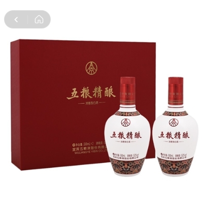• 商品名称:五粮液 精酿(印花中国风精品礼盒)五粮液股份公司出品 五粮精酿 浓香型白酒 52度500ml*2瓶 礼盒装(印花中国风精品礼盒)