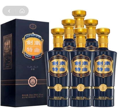 • 商品名称:剑南特曲 剑南春 剑南特曲 52度 浓香型白酒 500ml*6瓶 整箱装